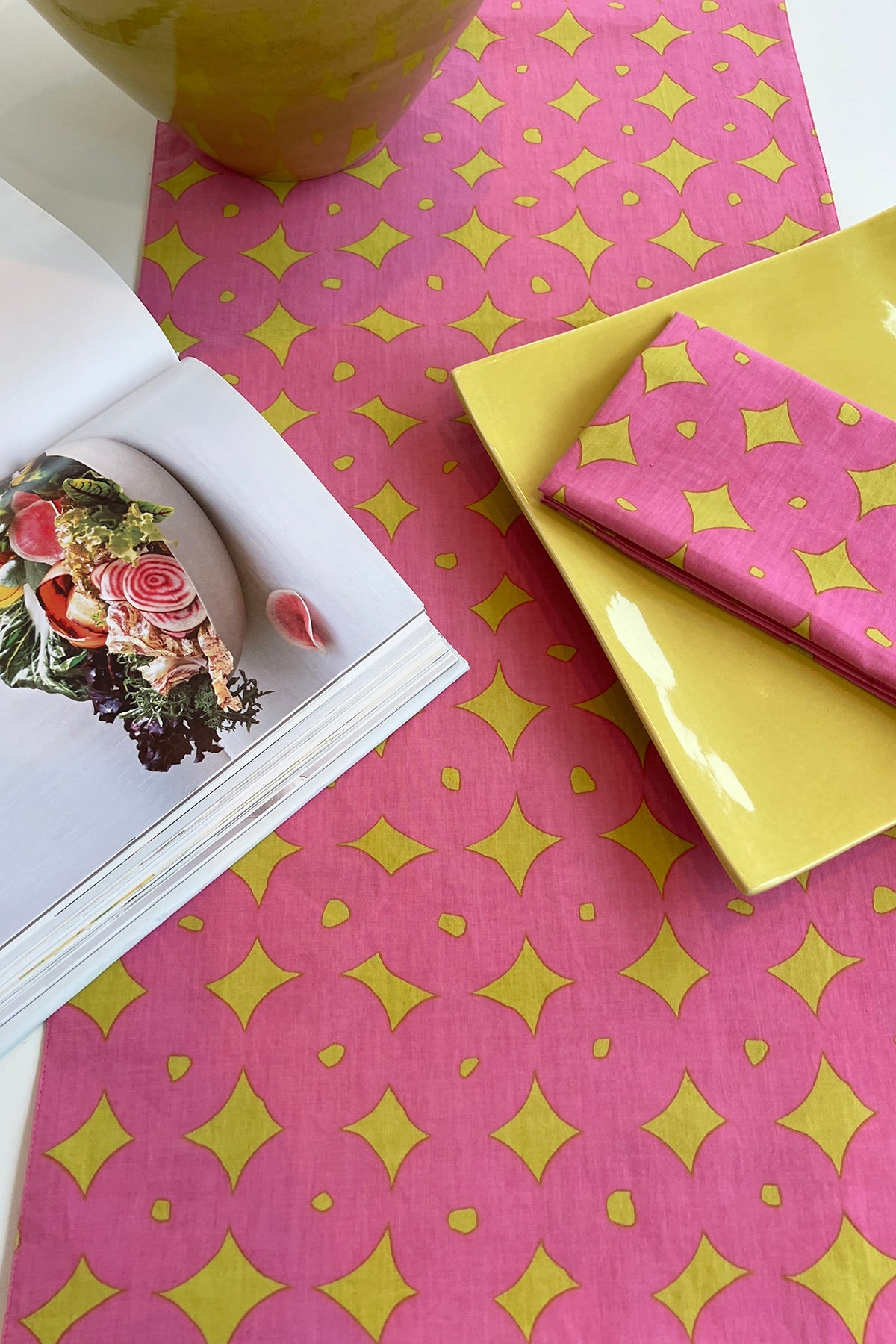 Brighten your table setting with our vibrant table runners. Constructed of cotton and featuring your choice of prints and colors, these stunning runners will help create a memorable setting for all to enjoy. Buy with the coordinating napkins and cocktail napkins for a complete look.